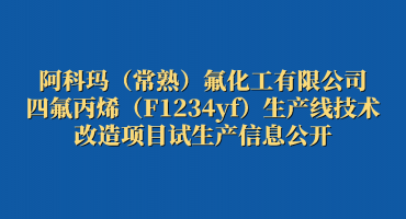 阿科瑪(常熟)氟化工有限公司四氟丙烯(F1234yf)生產(chǎn)線技術(shù)改造項目試生產(chǎn)信息公開